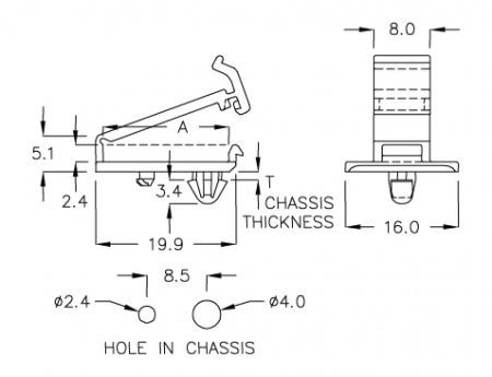 - Snap-Fit zum Anschließen der Leiterplatte an das Gehäuse.