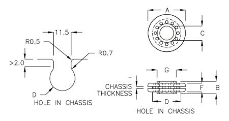 | PART NO | A | B | C | F | G | D | T CHASSIS THICKNESS | PACKAGE |