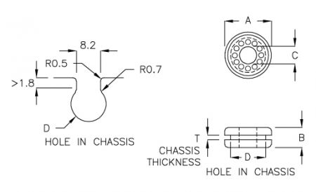 | PART NO | A | B | C | D | T CHASSIS THICKNESS | PACKAGE |