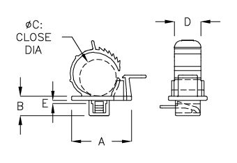 | NÚMERO DE PIEZA | A | B | DIÁMETRO DE CIERRE C | D | E | R | ENSAMBLAR CON P.G.PART | PAQUETE |