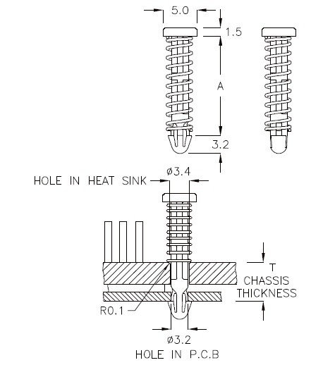 | NÚMERO DE PIEZA | A | T CHASIS ESPESOR | PAQUETE |