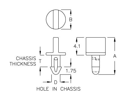 | NÚM. DE PARTE | A | B | D AGUJERO EN CHASIS | T CHASIS ESPESOR | PAQUETE |