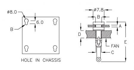 | NUMÉRO DE PIÈCE | A CHÂSSIS ÉPAISSEUR | B TROU DANS CHÂSSIS | C TROU DANS VENT | D CHÂSSIS DU VENTILATEUR ÉPAISSEUR | E | PAQUET |