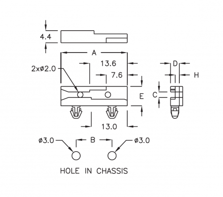 | NUMÉRO DE PIÈCE | A | B | C | D | E | H | CHÂSSIS ÉPAISSEUR |