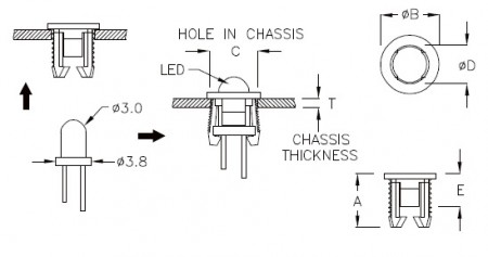 • Ø3,2핀 LED 램프에 적합합니다.