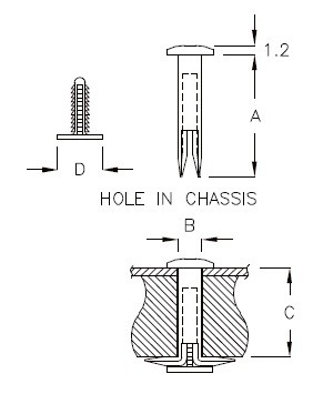 • 2개 부품 디자인, 먼저 암 그로밋을 삽입한 후 수 핀을 눌러 고정합니다.