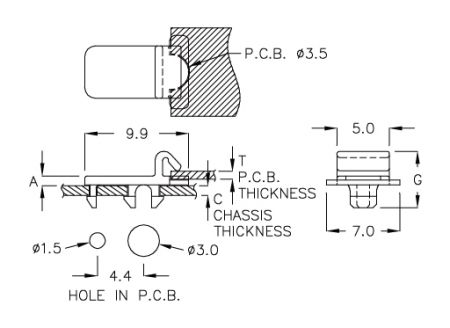 | SỐ PHẦN | A | G | C P.C.B. ĐỘ DÀY | T P.C.B. ĐỘ DÀY | GÓI |