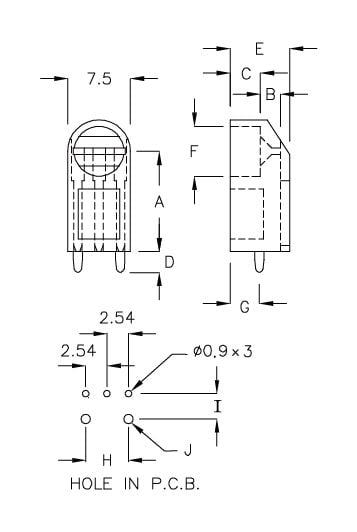 | LEK2-12T | 12.0 | 2.5 | 3.6 | 3.6 | 7.1 | Ø6.0 | 3.5 | 5.1 | 3.0 | Ø1.2 | |
