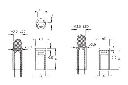 - *LED HOLDER WITH AN OVAL HOLE "H"