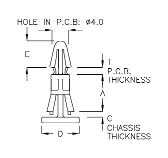 | PART NO | A | T PCB THICKNESS | C CHASSIS THICKNESS | D | E | PACKAGE |