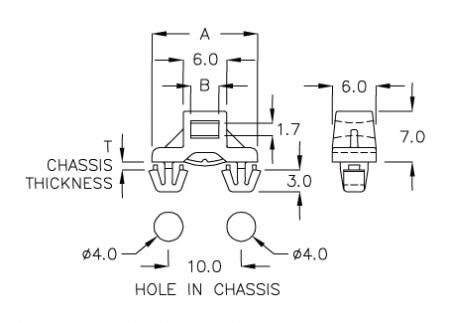 | PART NO | A | B | T CHASSIS THICKNESS | ASSEMBLE WITH PG PART | PACKAGE |
