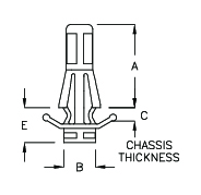 PART NO | A | B | C CHASSIS THICKNESS | E | PACKAGE |