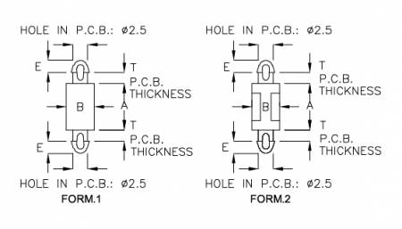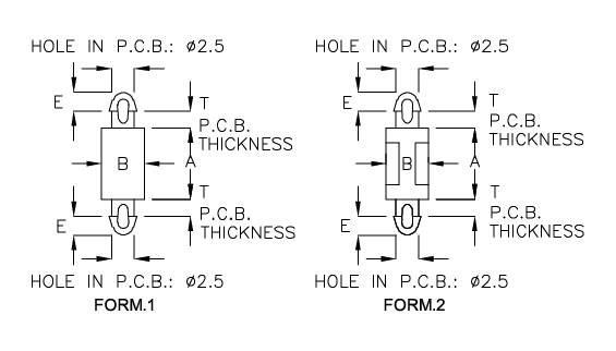 | PART NO | A | B | E | T P.C.B THICKNESS | FORM | PACKAGE |