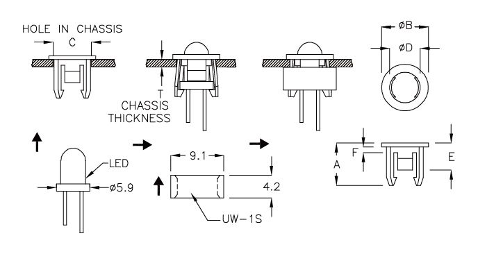 | CLED-1T | 6.9 | 7.8 | Ø6.2 | 5.1 | 4.5 | 1.9 | 1.0~1.6 | |